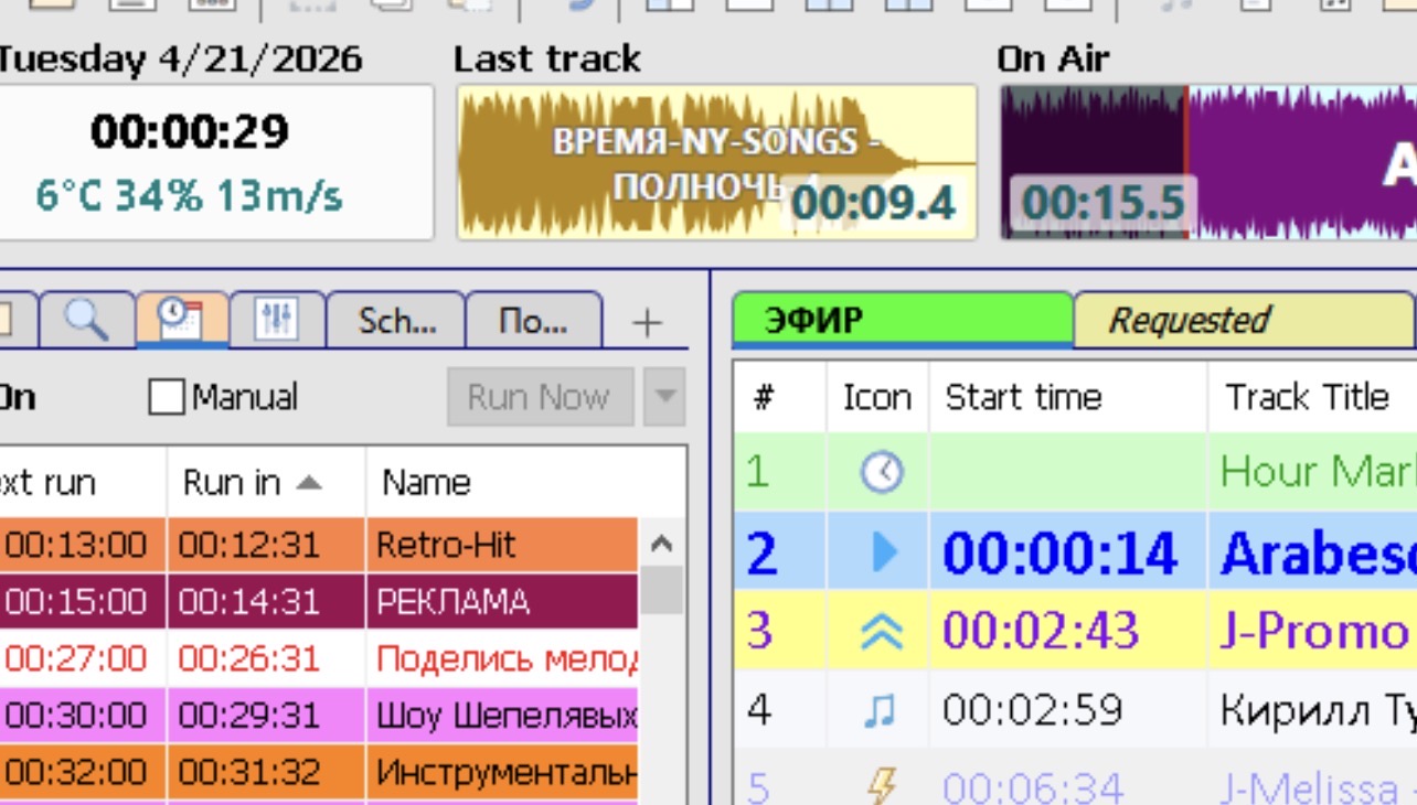 содержимое плей листа который играл в ЭФИР теперь играет в REQUESTED а в закладке ЭФИР