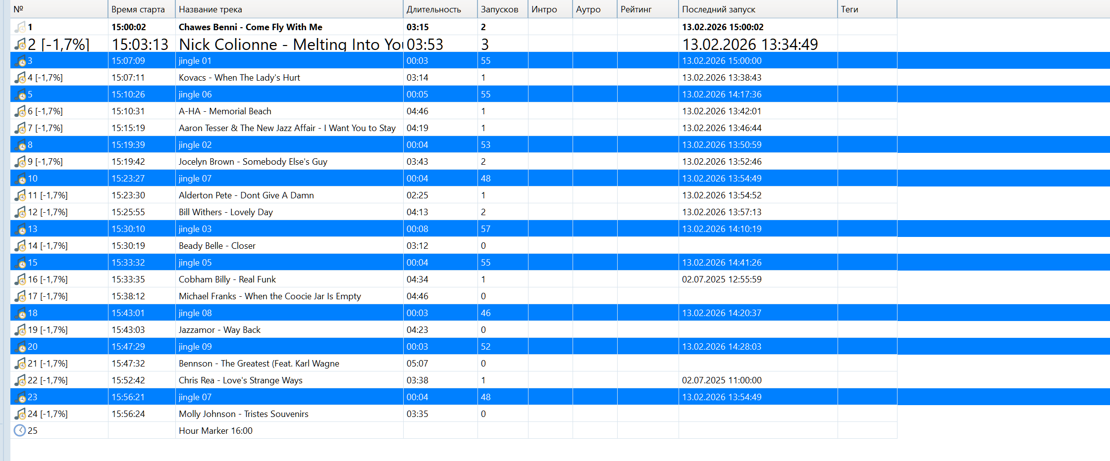 Вот у меня запустился плейлист в ровное время и программа мне написала -1.7% ко всем трекам(rb 01) но:
