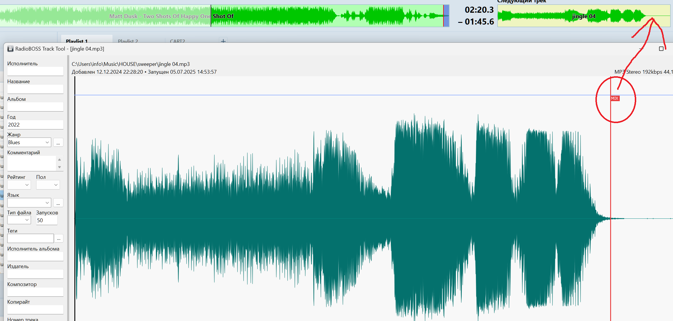 Можно ли в вайвформу Следующий трек добавить отображение маркера Mix ?
