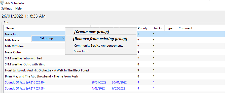 right-click on the ads in Ads list - Delete, Delete from disc, Move to folder, Copy to folder, Prelisten, Open file location, Export to player...